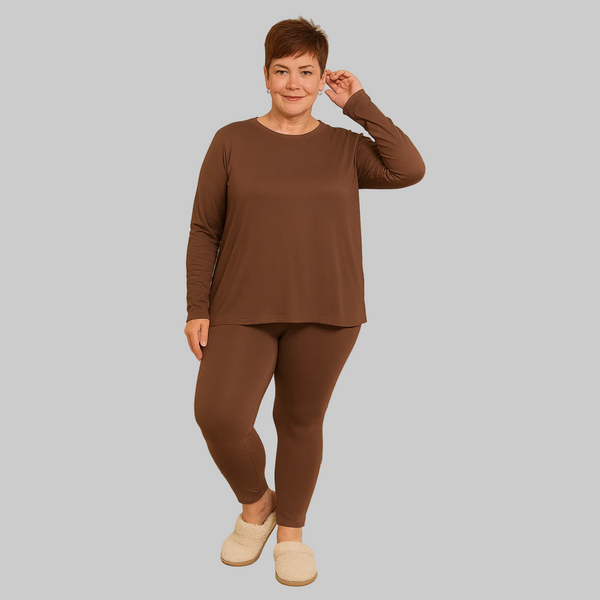 Upgrade your wardrobe with our Brown Butter Soft Plus Size Crewneck Legging Set, designed for women who love comfort without sacrificing style. This two-piece set includes a curve-flattering crewneck top and high-stretch leggings that offer a smooth, slimming silhouette. Perfect for mature plus-size women, this outfit transitions seamlessly from daytime errands to night-out chic. Ideal for sizes 1X–3X, this comfy matching set is a must-have for fall, winter, and year-round fashion.